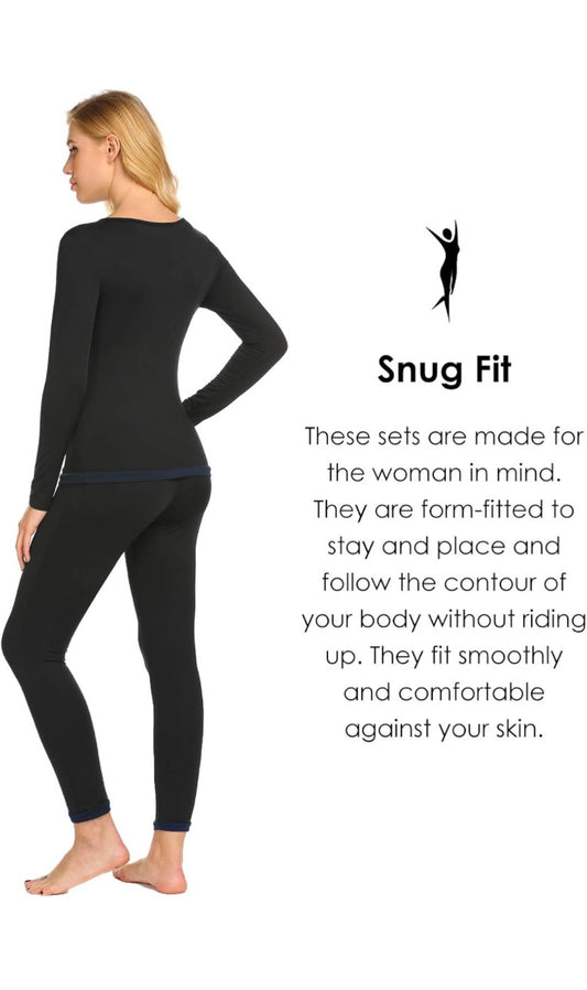 Thermal Underwear Sets Long Johns Base Layer Lightweight Thermals 2 Pieces Set-Black