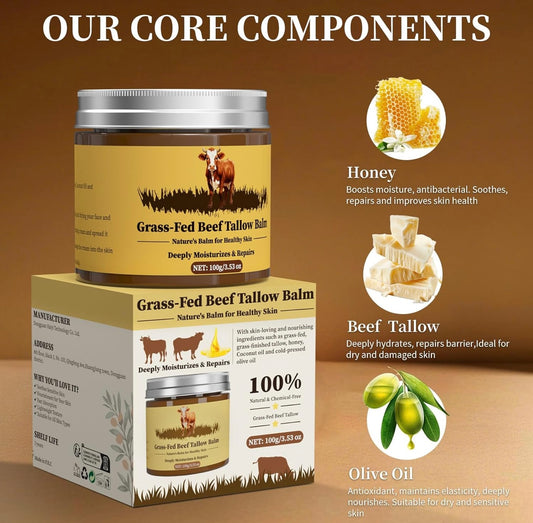 Whipped Organic Beef Tallow & Honey Balm – Deep Moisturizing Face & Body Cream (3.53oz)