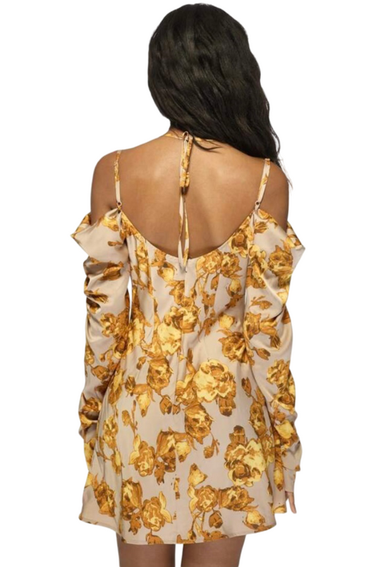 Elegant Printed Cowl Neck Drape Sleeve Mini Dress