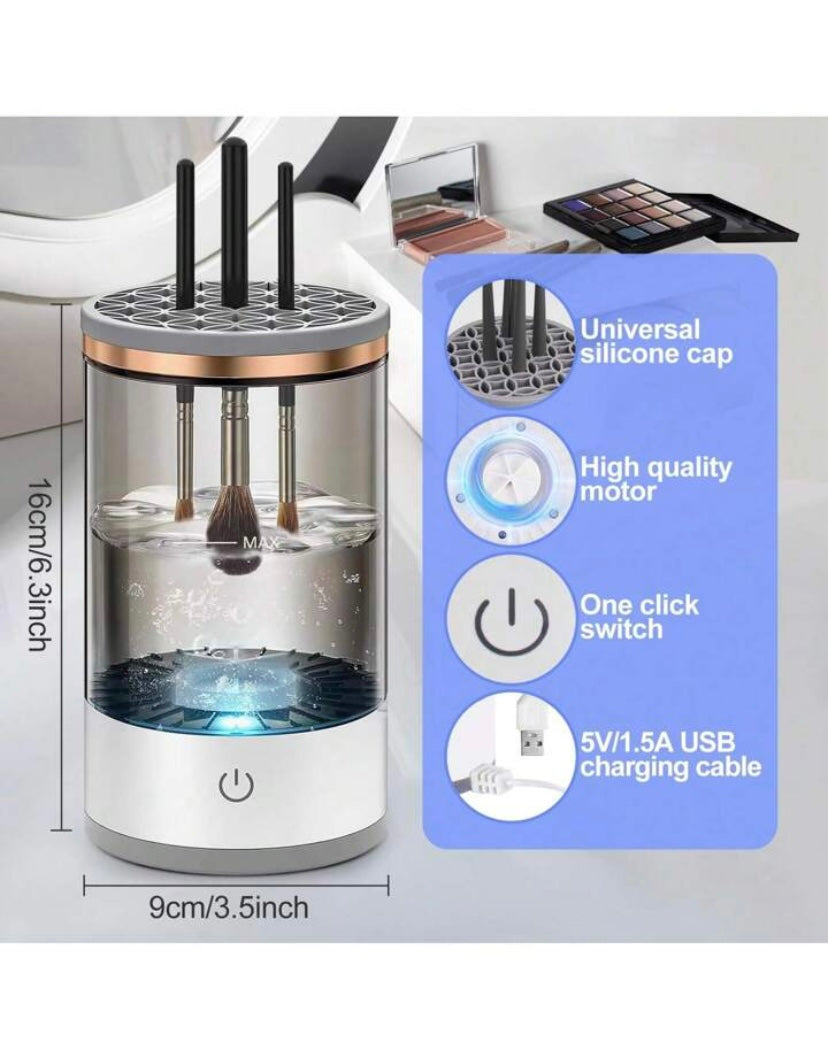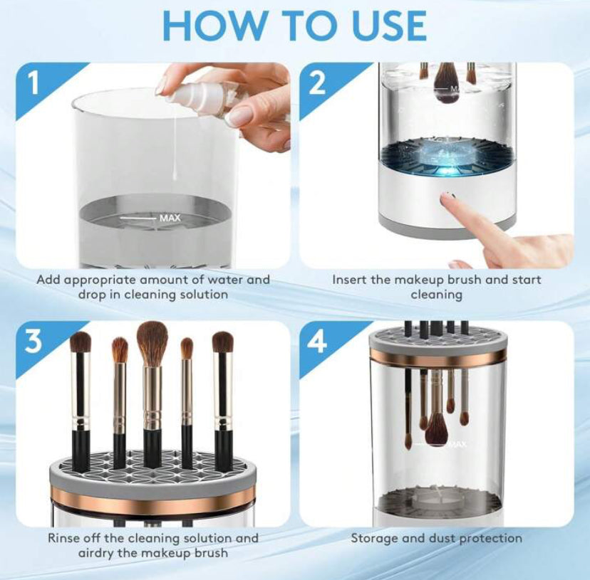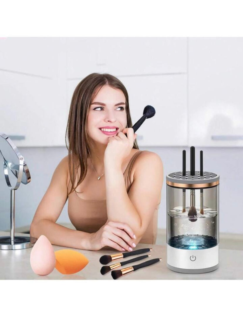 Max 2-in-1 Electric Makeup Brush Cleaner & Dryer, USB Rechargeable, Waterproof, with Storage Stand